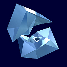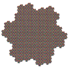 Six spidron nests with four spidron arms each can be assembled to form a body similar to a cube which has 3 left-handed and 3 right-handed spidron nests of this kind and as such it is also a space-filler. |