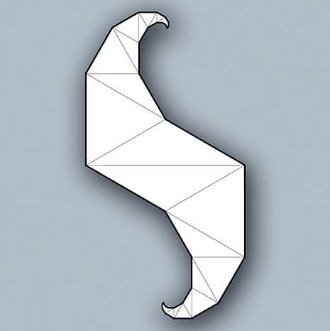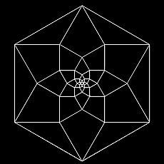 A spidron is a plane figure consisting of an alternating sequence of equilateral and isosceles (30°, 30°, 120°) triangles. Within the figure, one side of a regular triangle coincides with one of the sides of an isosceles triangle, while another side coincides with the hypotenuse of another, smaller isosceles triangle. The sequence can be repeated any number of times in the direction of the smaller and smaller triangles, and the entire figure is centrally projected through the mid-point of the base of the largest isosceles triangle.